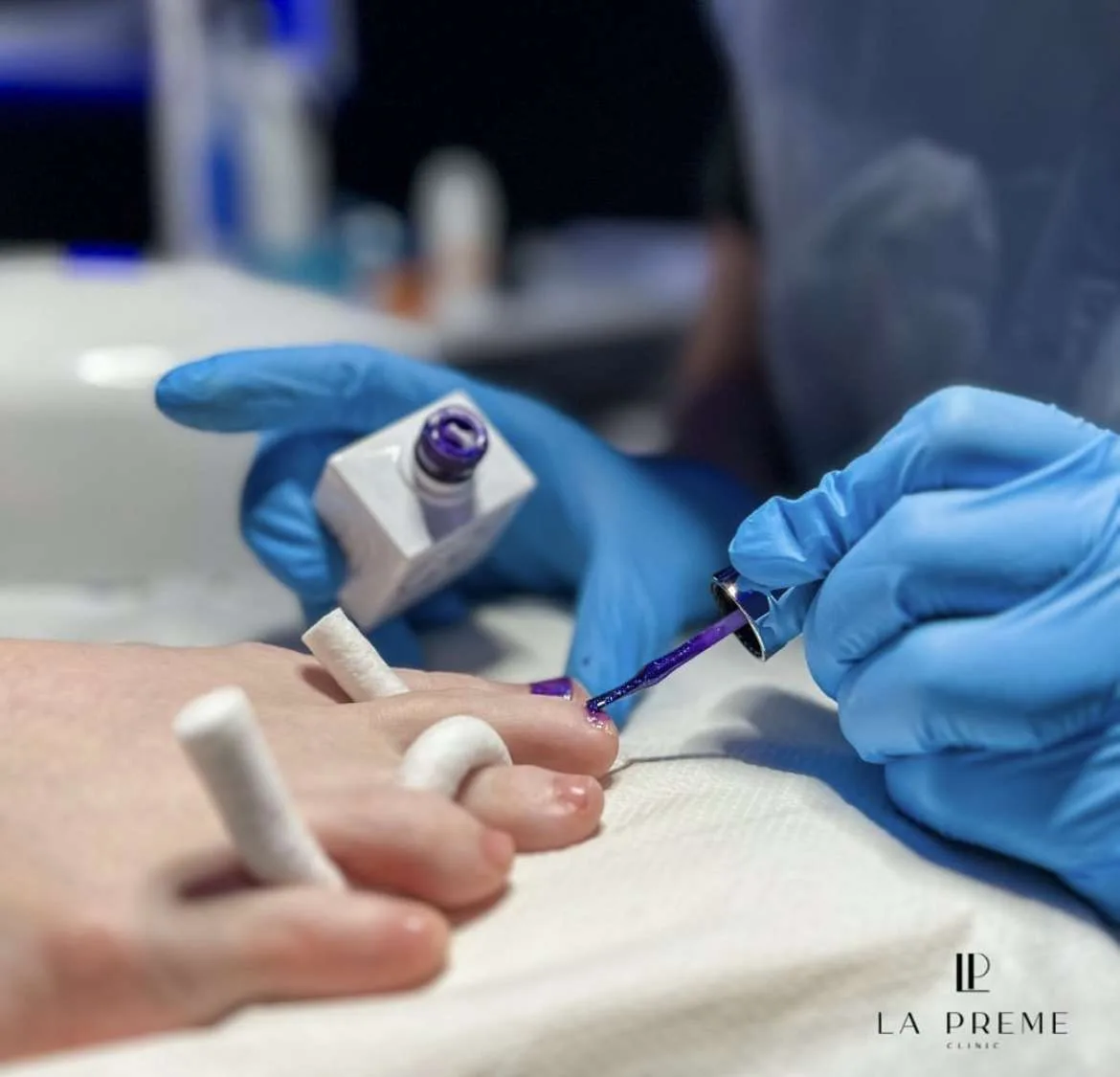 At La Preme clinic we can carry out in-house testing for diagnosing a fungal nail infection. Results take approximately 5 minutes and are 97% accurate for the most common nail dermatophytes. We will test the clippings while tidying your nails and skin. If a positive result, we will discuss all treatment options and give the advice to prevent reoccurrence. Your footwear will be sprayed with an anti-fungal treatment to help reduce the fungal burden in your footwear.
